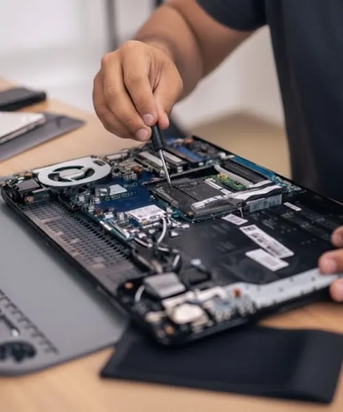 Si hay teclas muertas o doble escritura, vamos directo al reemplazo completo cuando corresponde. En touchpad, revisamos cableado y drivers. Si hubo líquido, evaluamos limpieza o sustitución.